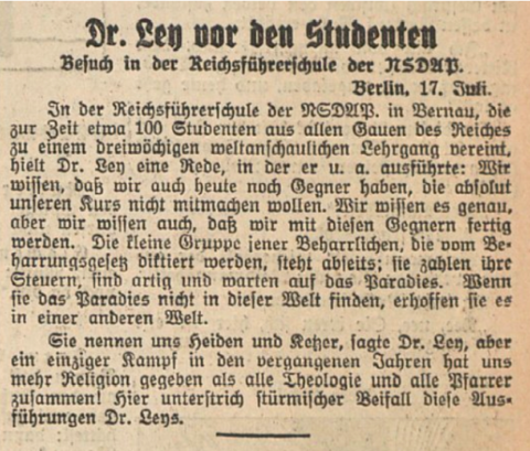 M4 Schaumburger Zeitung v. 08.07.1935. Aus einer Rede von SA-Stabschef Lutze
