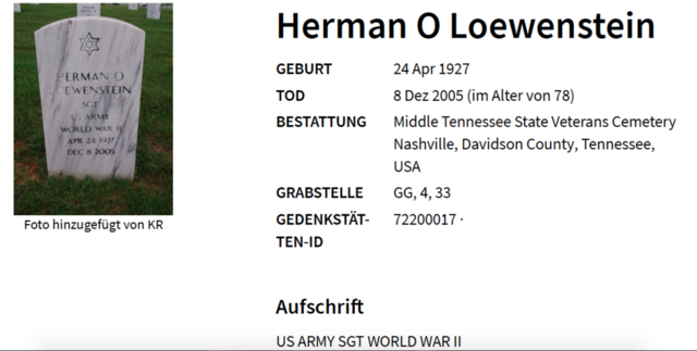 Er stirbt 2005 und ist (als ehem. Sergeant der US-Armee) auf einem Militärfriedhof mit dem Davidstern bestattet: