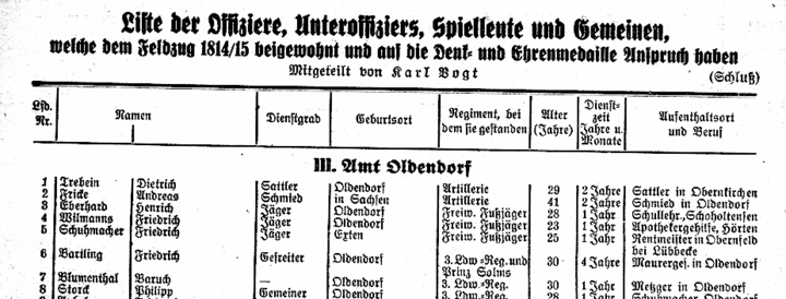 Baruch Blumenthal auf Nr. 7 der Liste der Freiheitskämpfer gegen Napoleon.