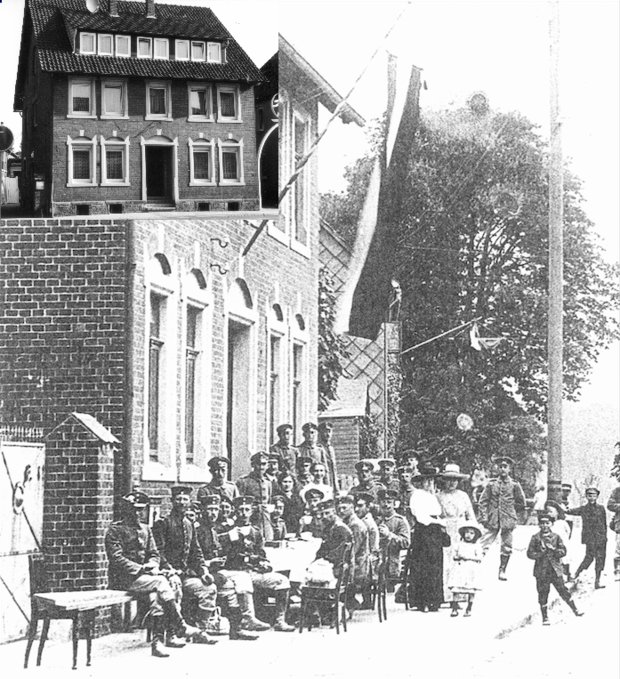 Bei Ausbruch des Ersten Weltkrieges richteten die Löwensteins vor ihrem Haus an der Langen Straße eine vaterländische Feier aus. Ein Foto zeigt das Haus im Fahnenschmuck und Soldaten an einer gedeckten Kaffeetafel.