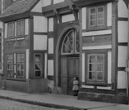 Wohnhaus von Louis Blumenthal, Frau Jenny und Tochter Martha, ca. 1918. Vor der Haustür wahrscheinlich die etwa 4-Jährige Martha. (Copyright: Bildarchiv Marburg)