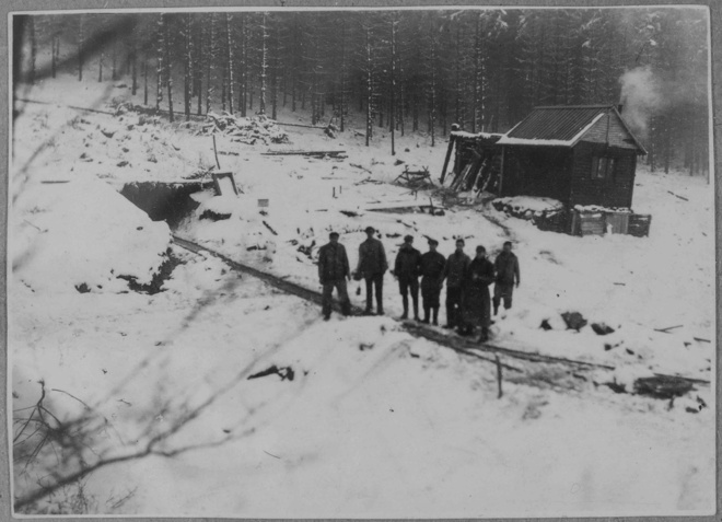 Auf diesem Bild steht wohl fast die gesamte Belegschaft vor dem Stollen.