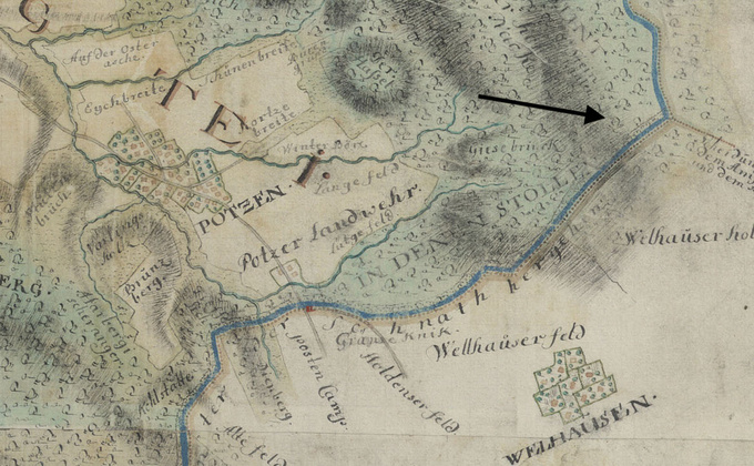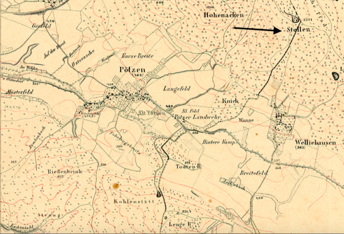 Eine Karte von 1650 zeigt schließlich oberhalb der „Pötser Landwehr“ ein Flurstück namens „Am Stollen“:
