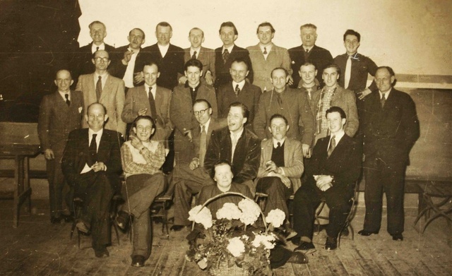 Die Belegschaft 1951/52 bei einem Betriebsfest. Vorn: Else Röhl, die Lohnbuchhalterin. Hinten, 3. v.l.: Wilhelm Röhl. Rechts außen: Bürgermeister Beißner.