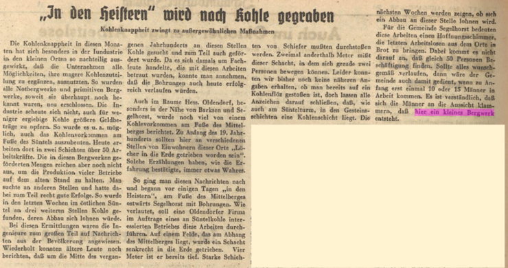 - Sie finanzieren „Notbergwerke“, u.a. auch „am Fuße des Süntels“, wo im Winter 1951 mehr als 50 Arbeiter in Schichtbetrieb Kohle schürfen