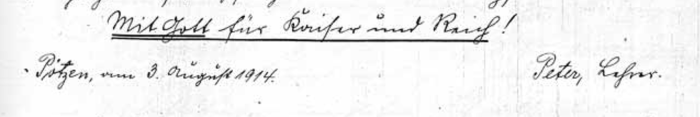 Pötzen, am 3. August 1914. Peter, Lehrer.